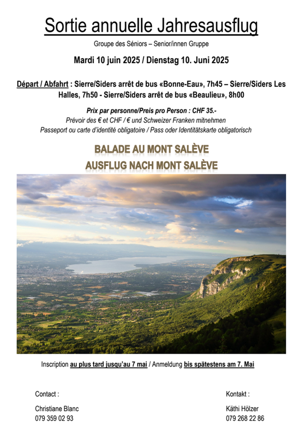 Cette année, nous partirons pour une balade au Mont Salève, magnifique montagne surplombant la région genevoise et offrant une vue exceptionnelle sur le bassin lémanique.