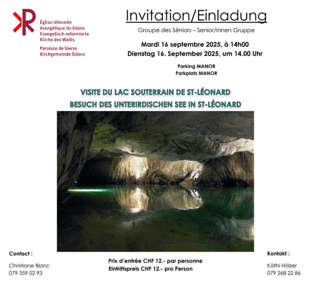 - 14 mars 2025 à 12h00 à la Paroisse réformée de Sierre, avenue des Alpes 14